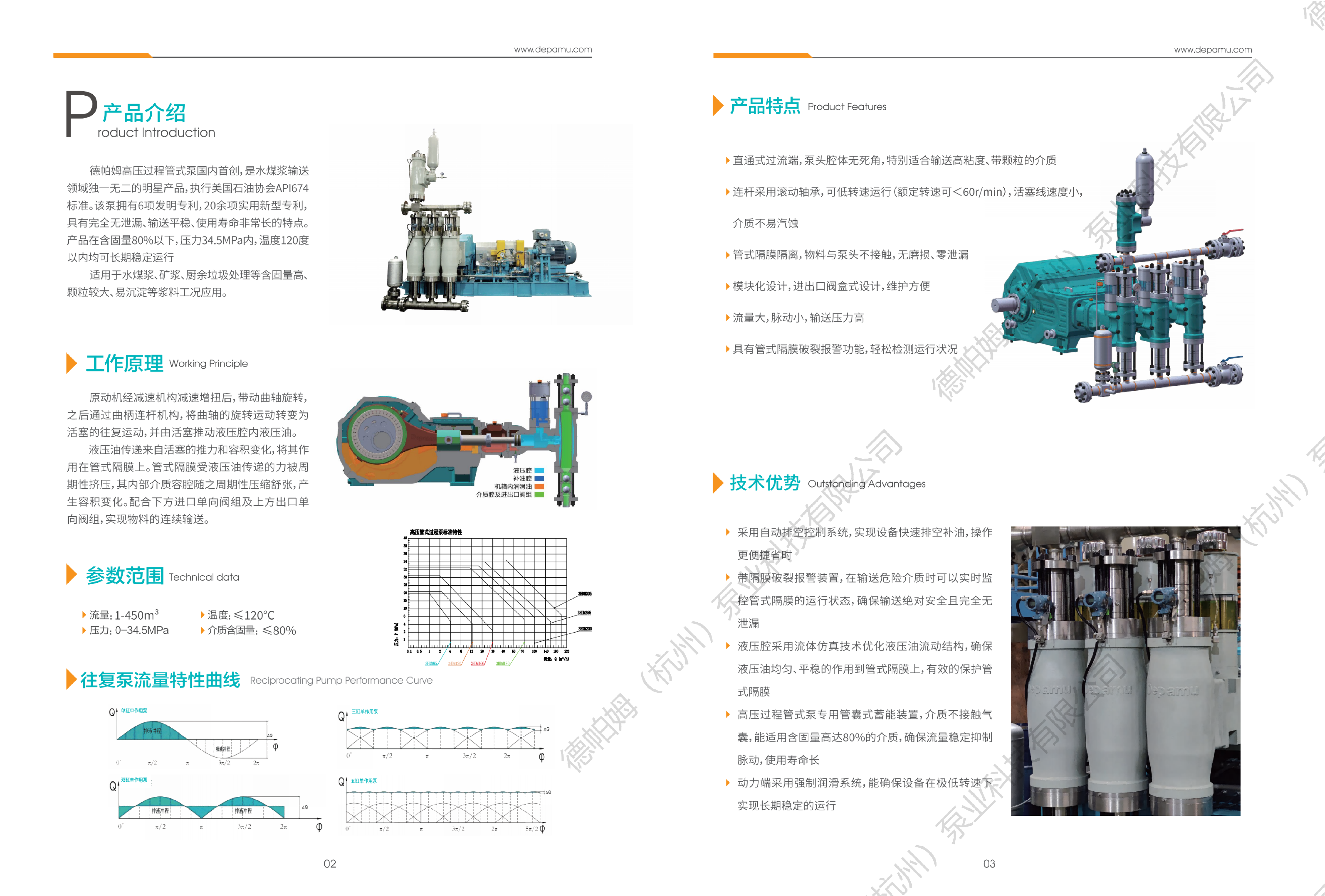 德帕姆高壓過程管式泵國內(nèi)首創(chuàng),按照國際API674標(biāo)準(zhǔn)設(shè)計。該泵擁有6項發(fā)明專利,20余項實用新型專利。具有完全無泄漏、輸送平穩(wěn)、使用壽命非常長的特點。產(chǎn)品在含固量80%以下,壓力25MPa內(nèi),溫度120度以內(nèi)均可長期穩(wěn)定運行。 適用于水煤漿、 礦漿、廚余垃圾處理等含固量高、顆粒較大、易沉淀等漿料工況應(yīng)用。