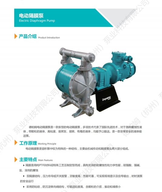 德帕姆電動(dòng)隔膜泵是一款新型的電動(dòng)隔膜泵,多項(xiàng)技術(shù)代表了國(guó)際先進(jìn)水平,對(duì)于各種腐蝕性液體,帶顆粒的液體、高粘度、易揮發(fā)、易燃、有毒的液體,均能予以輸送,是一款非常安全的液體輸送泵。